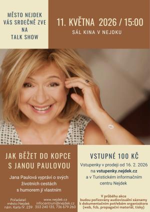 Město Nejdek Vás zve na jedinečné talkshow s Janou Paulovou.