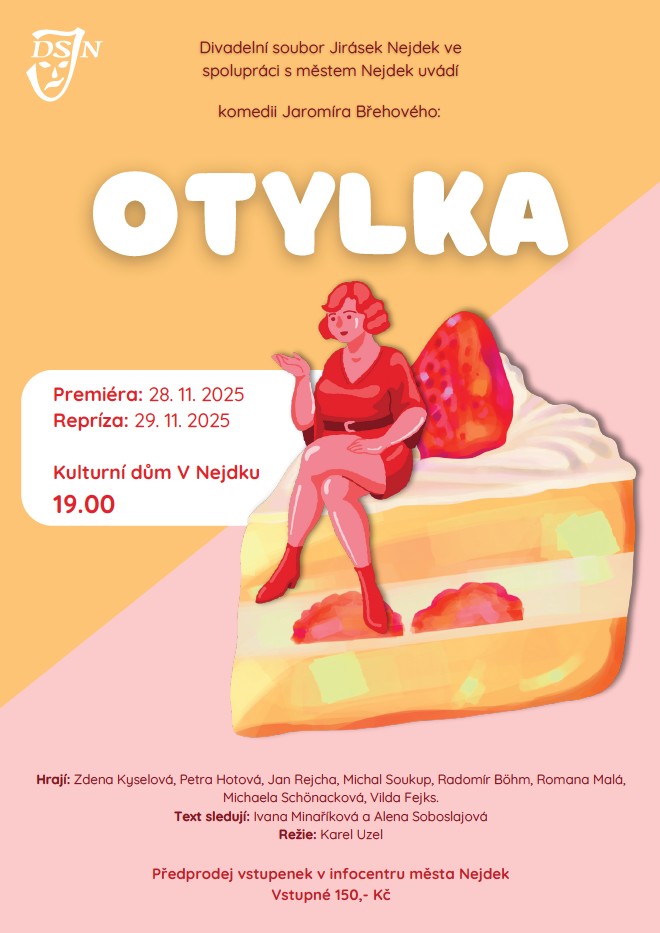 Divadelní soubor Jirásek Nejdek ve spolupráci s městem Nejdek uvádí komedii Jaromíra Břehového OTYLKA.