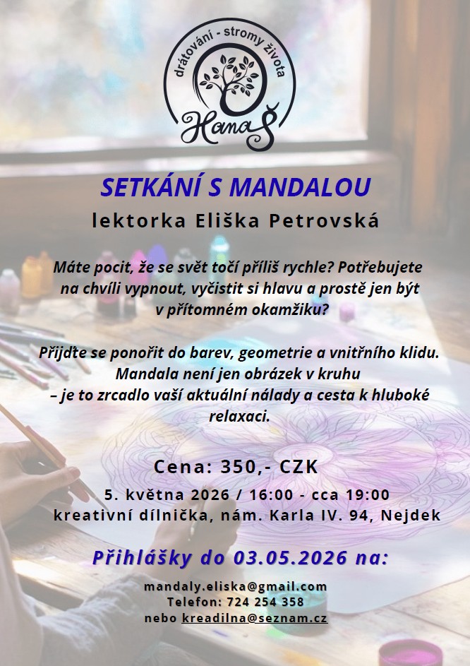 Máte pocit, že se svět točí příliš rychle? Potřebujete na chvíli vypnout, vyčistit si hlavu a prostě jen být v přítomném okamžiku? Přijďte se ponořit do barev, geometrie a vnitřního klidu. Mandala není jen obrázek v kruhu – je to zrcadlo vaší aktuální nálady a cesta k hluboké