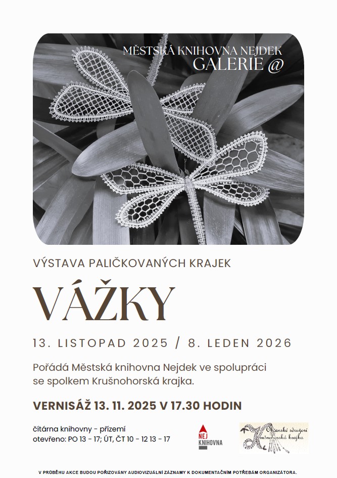 Po roce je opět připravena výstava paličkované krajky. Ve čtvrtek 13. 11. od 17.30 hodin se uskuteční vernisáž s nejdeckými paličkářkami, které vystavují své práce v nejdecké knihovně již řadu let.