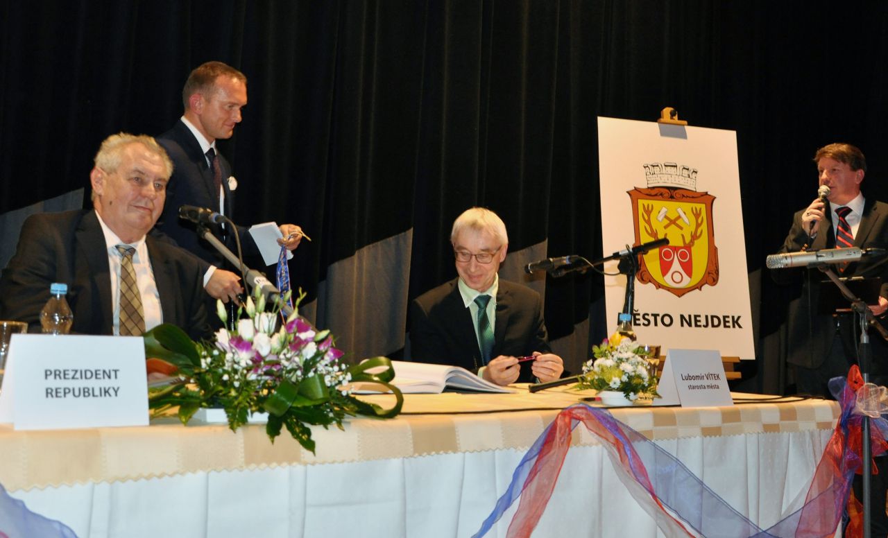 Prezident České republiky Miloš Zeman zavítal při své návštěvě Karlovarského kraje také do Nejdku. V čítárně Městské knihovny v Nejdku se setkal se zastupiteli města a představiteli významných místních podniků. Poté v městském kině besedoval s občany.